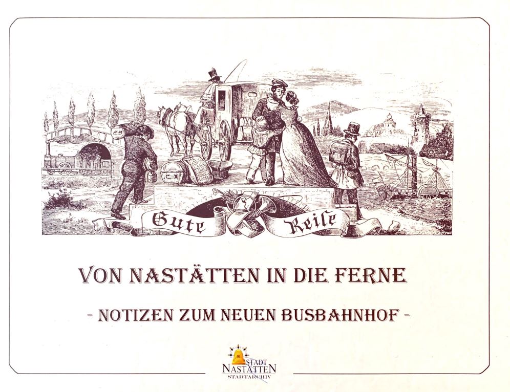 Mit dieser kleinen Broschüre soll die Geschichte „unseres Bahnhofes„ nähergebracht werden. Viele Mitbürger werden sich noch an diese Zeit erinnern oder die Geschichten von ihren Eltern erzählt bekommen haben. Sie halten hiermit ein Stück Zeitgeschichte, auf das wir besonders stolz sein können. Die kleine Broschüre „unseres Bahnhofes“ ist zur Fertigstellung des neuen Busbahnhofes im Jahre 2007 erschienen. Herausgeber: Stadt Nastätten Idee, Gestaltung und Ausführung: Klaus-Dieter Otto Erhältlich im Stadtarchiv-Nastätten gegen eine kleine Spende